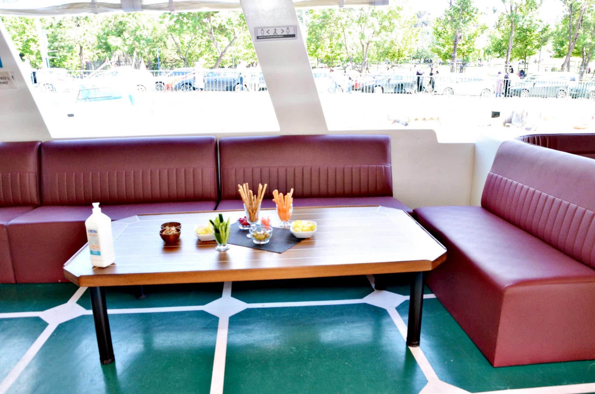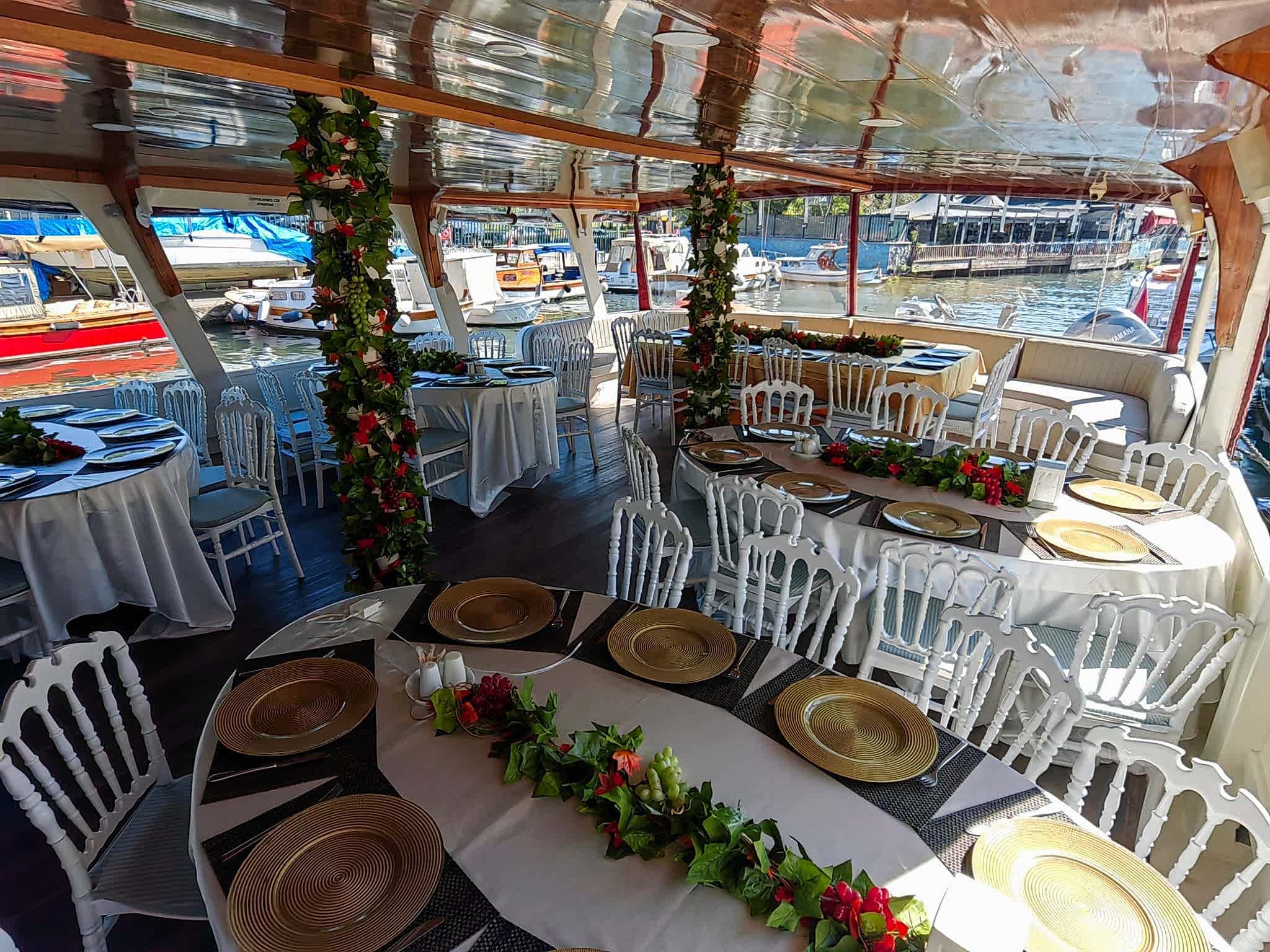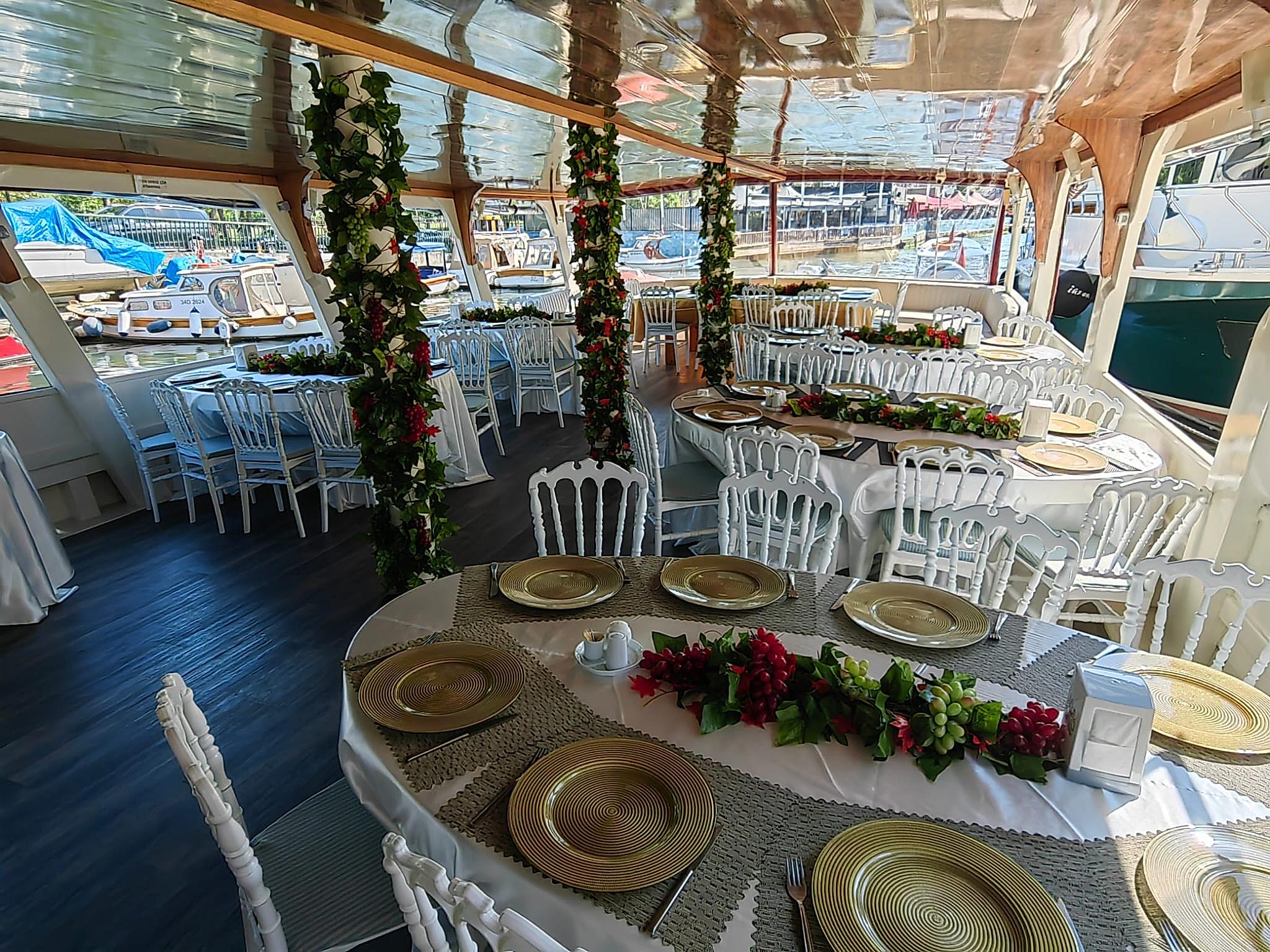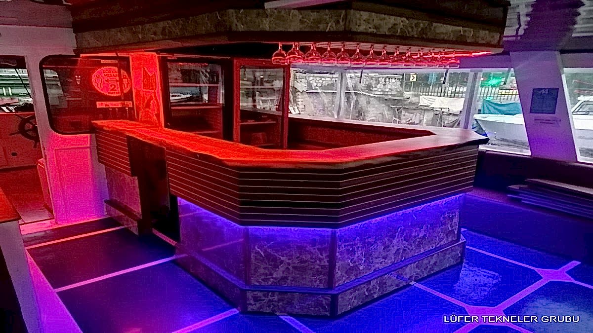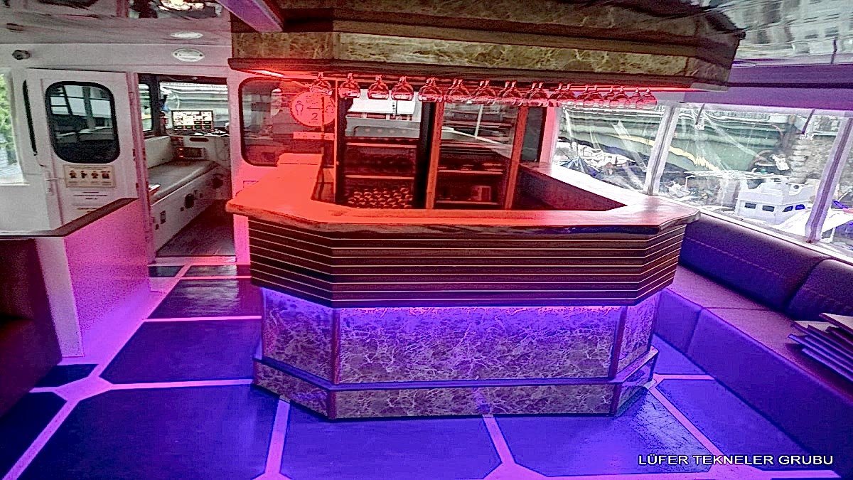 Yemekli Kapasite 60 Kişi , Kokteyl Kapasite 60 kişi .Günlük, saatlik ,akşam ,gündüz kiralık gezi teknesi.