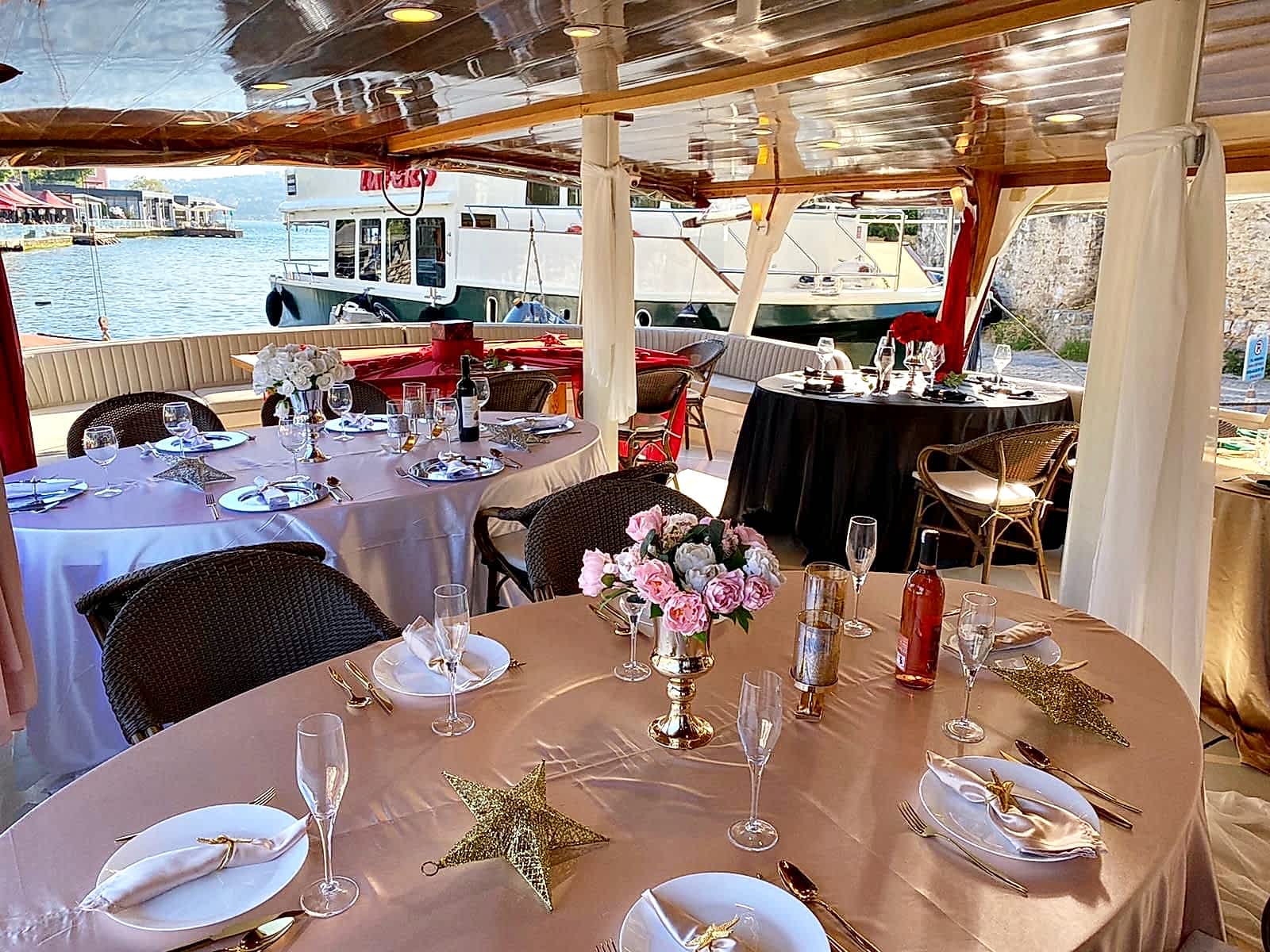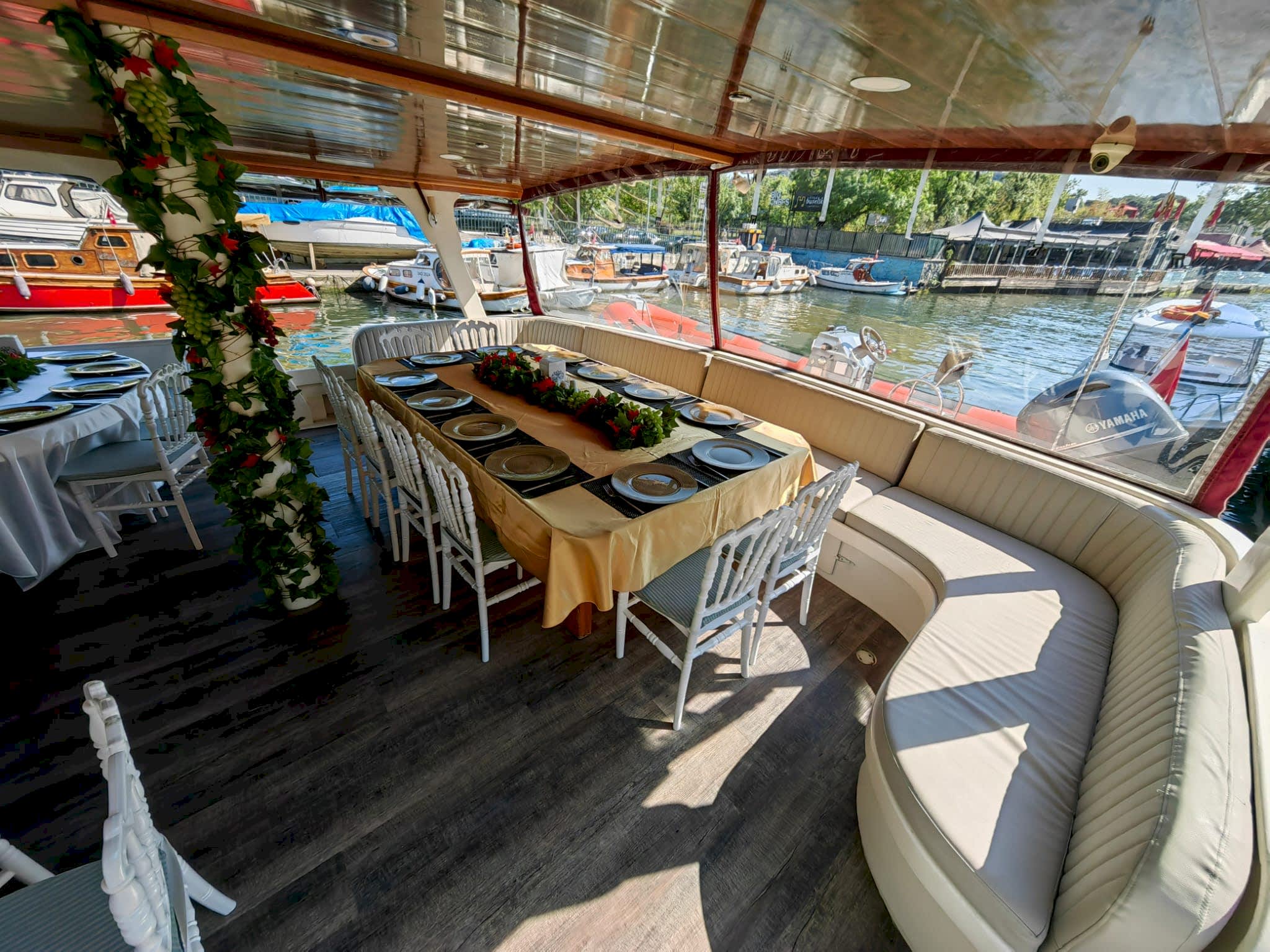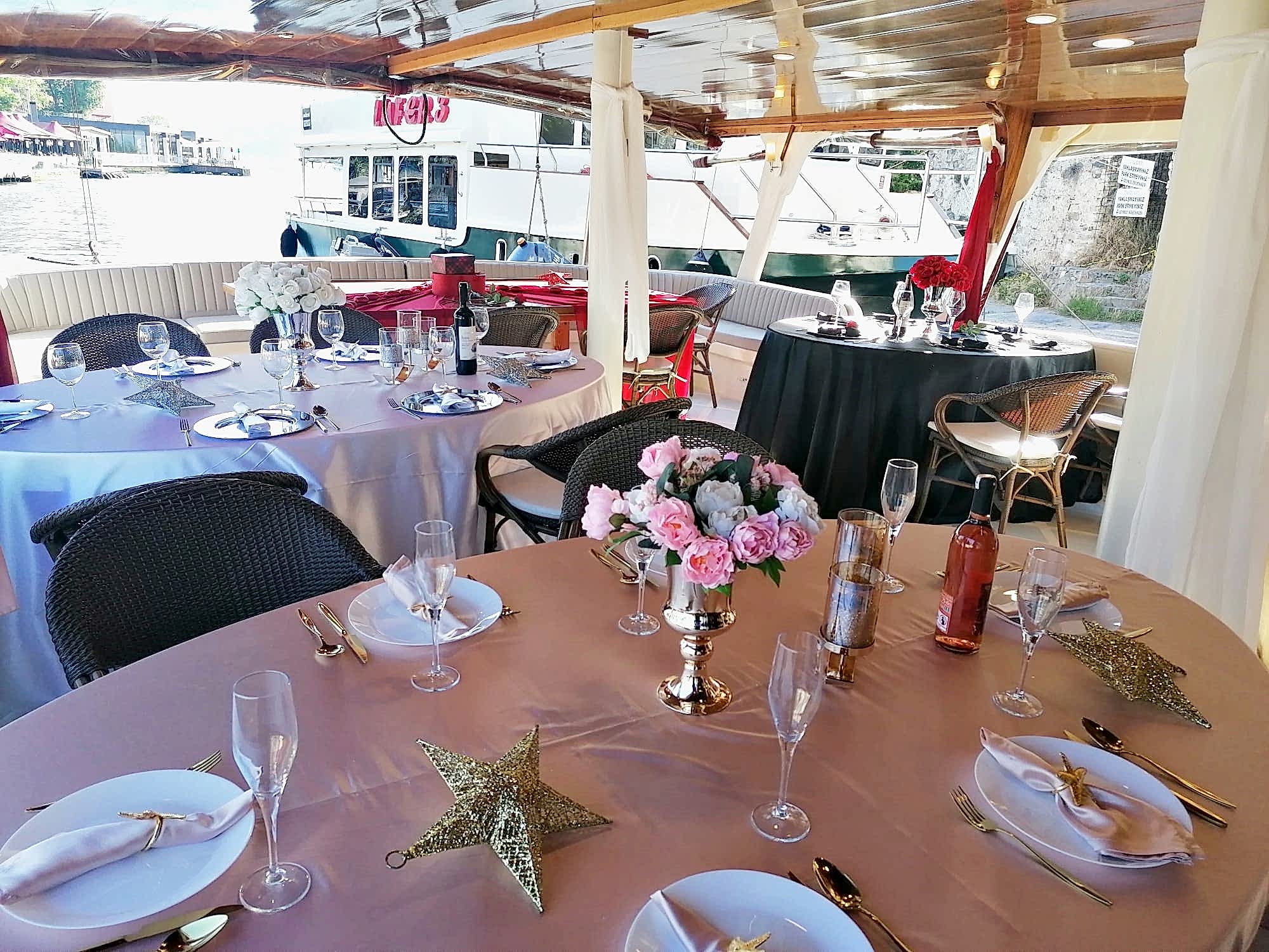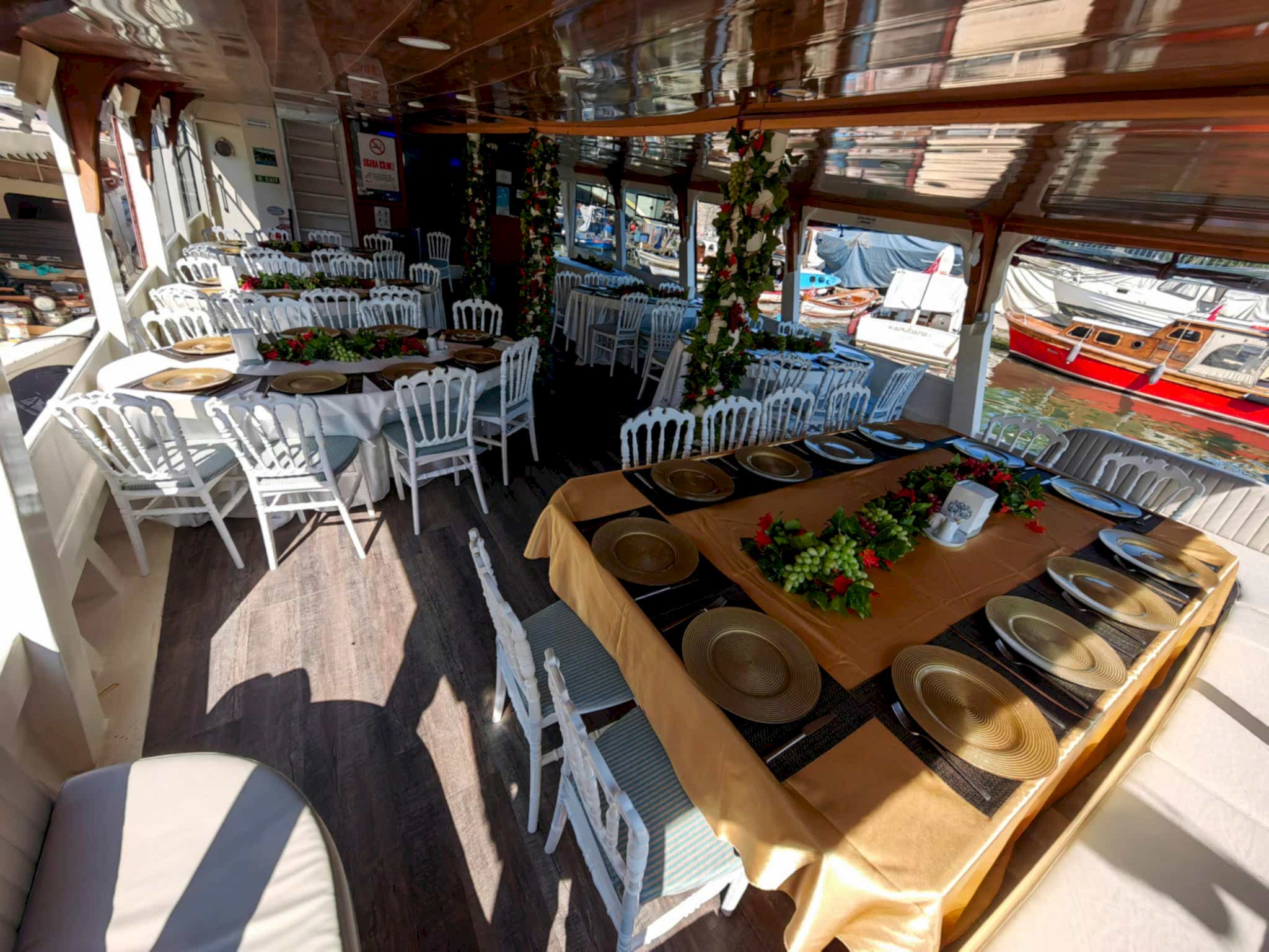 Yemekli Kapasite 60 Kişi , Kokteyl Kapasite 60 kişi .Günlük, saatlik ,akşam ,gündüz kiralık gezi teknesi.
