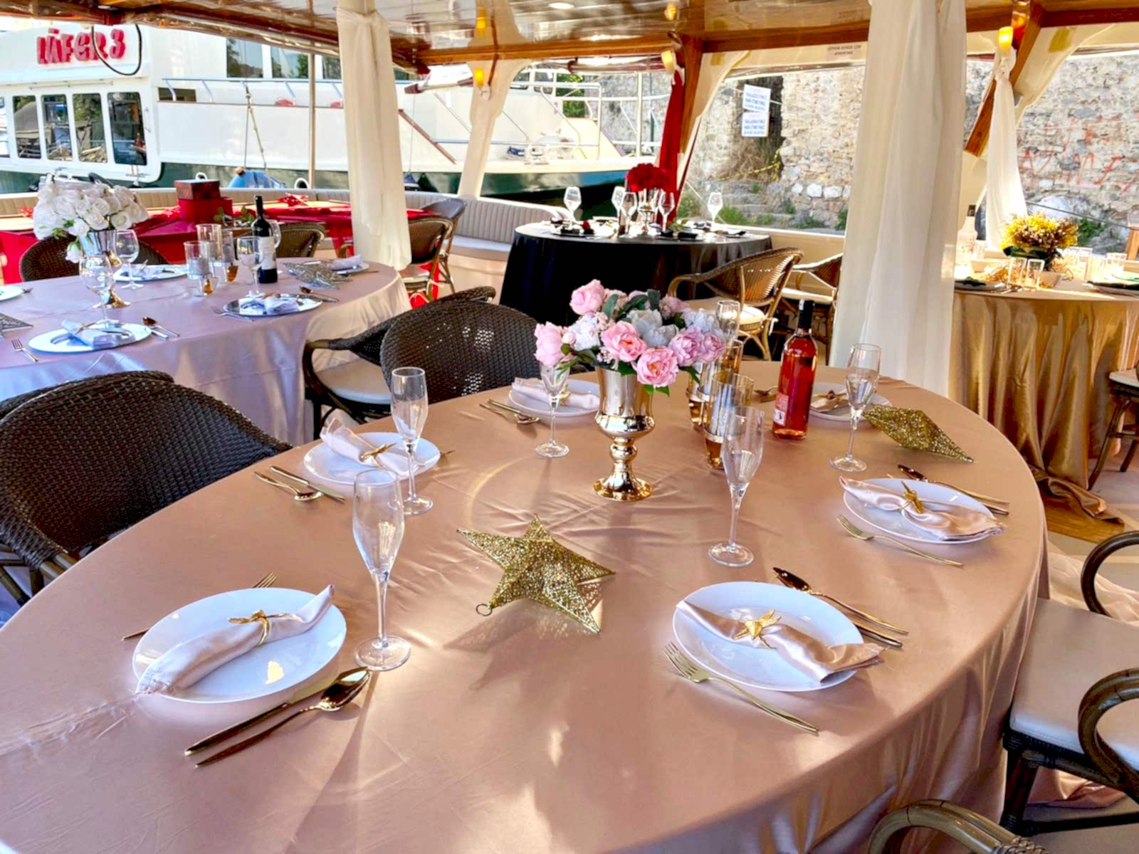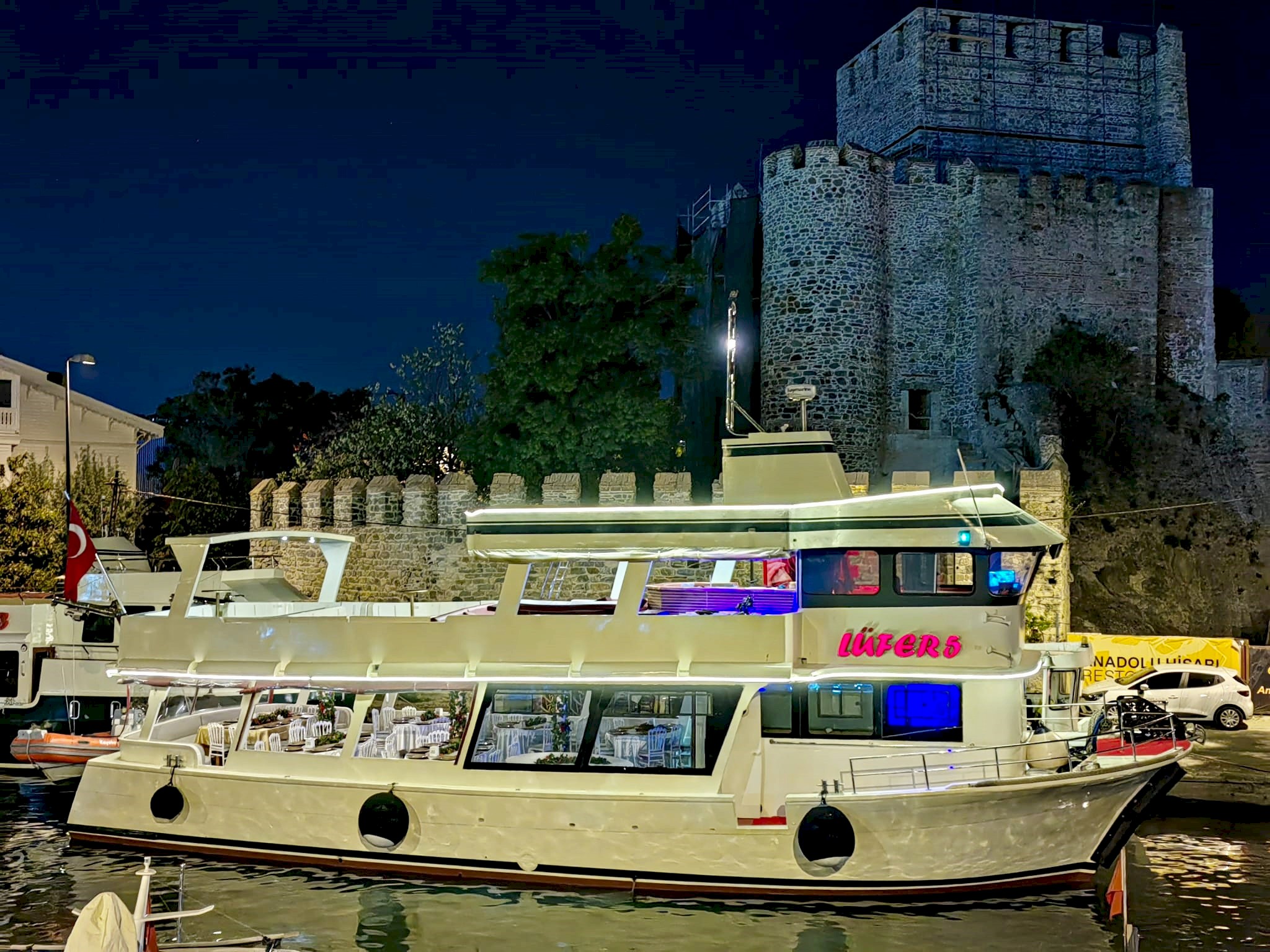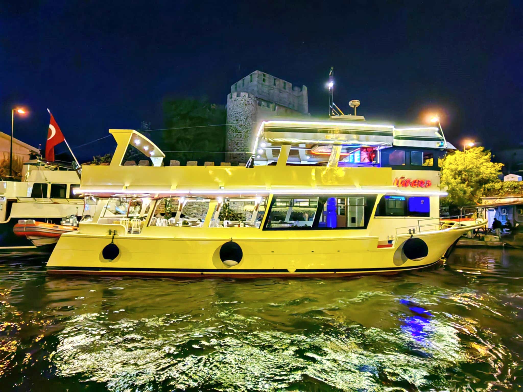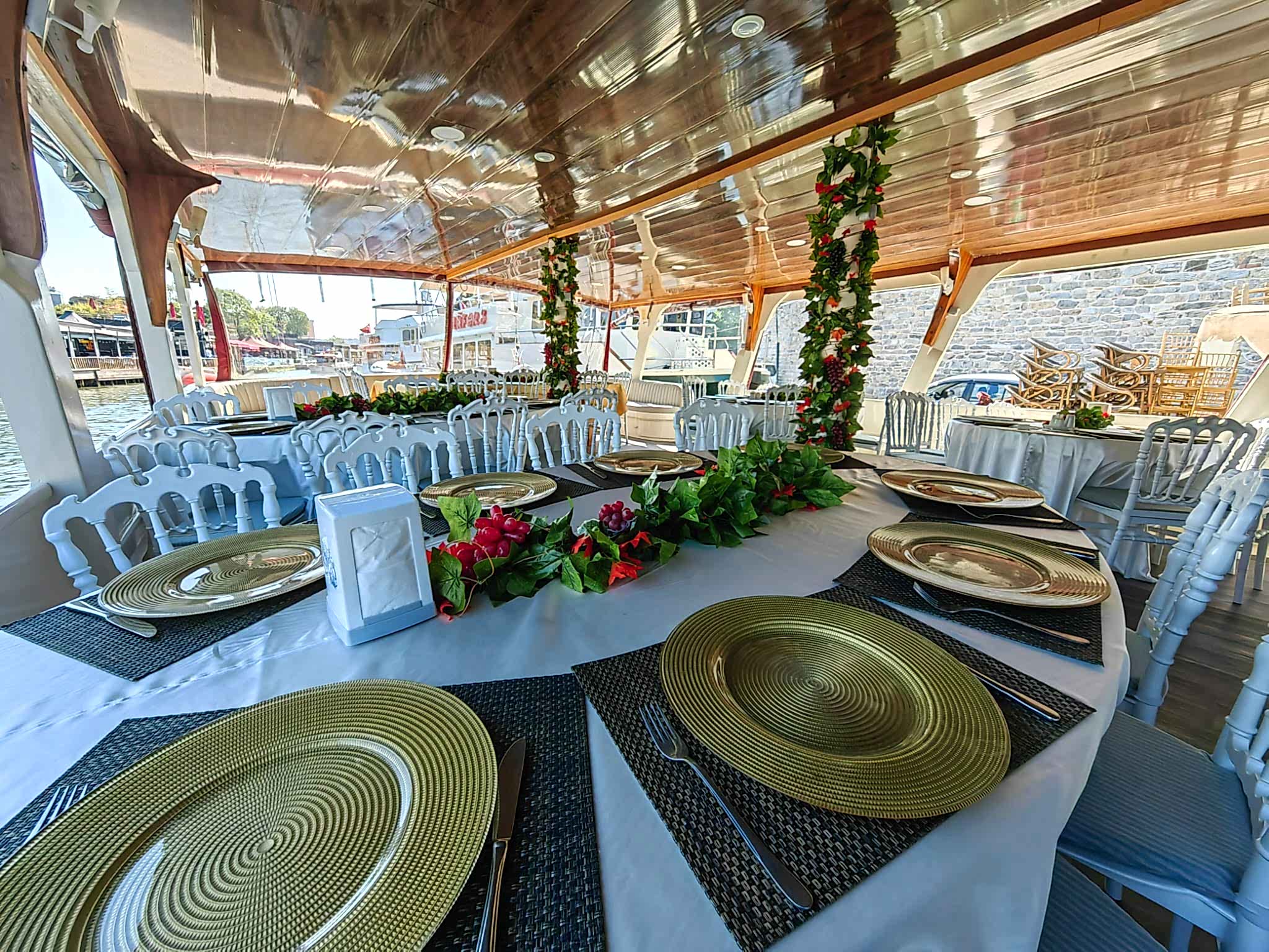 Yemekli Kapasite 60 Kişi , Kokteyl Kapasite 60 kişi .Günlük, saatlik ,akşam ,gündüz kiralık gezi teknesi.