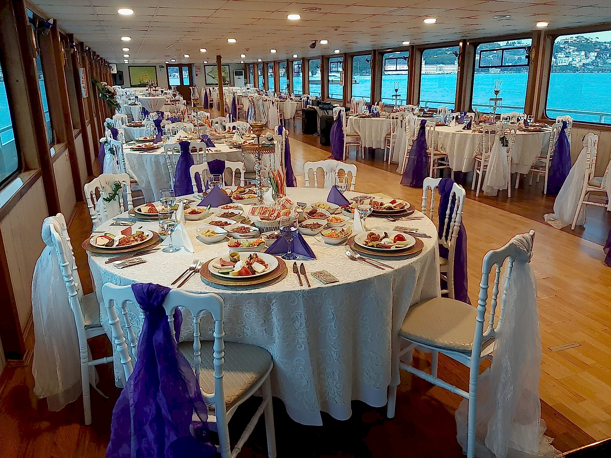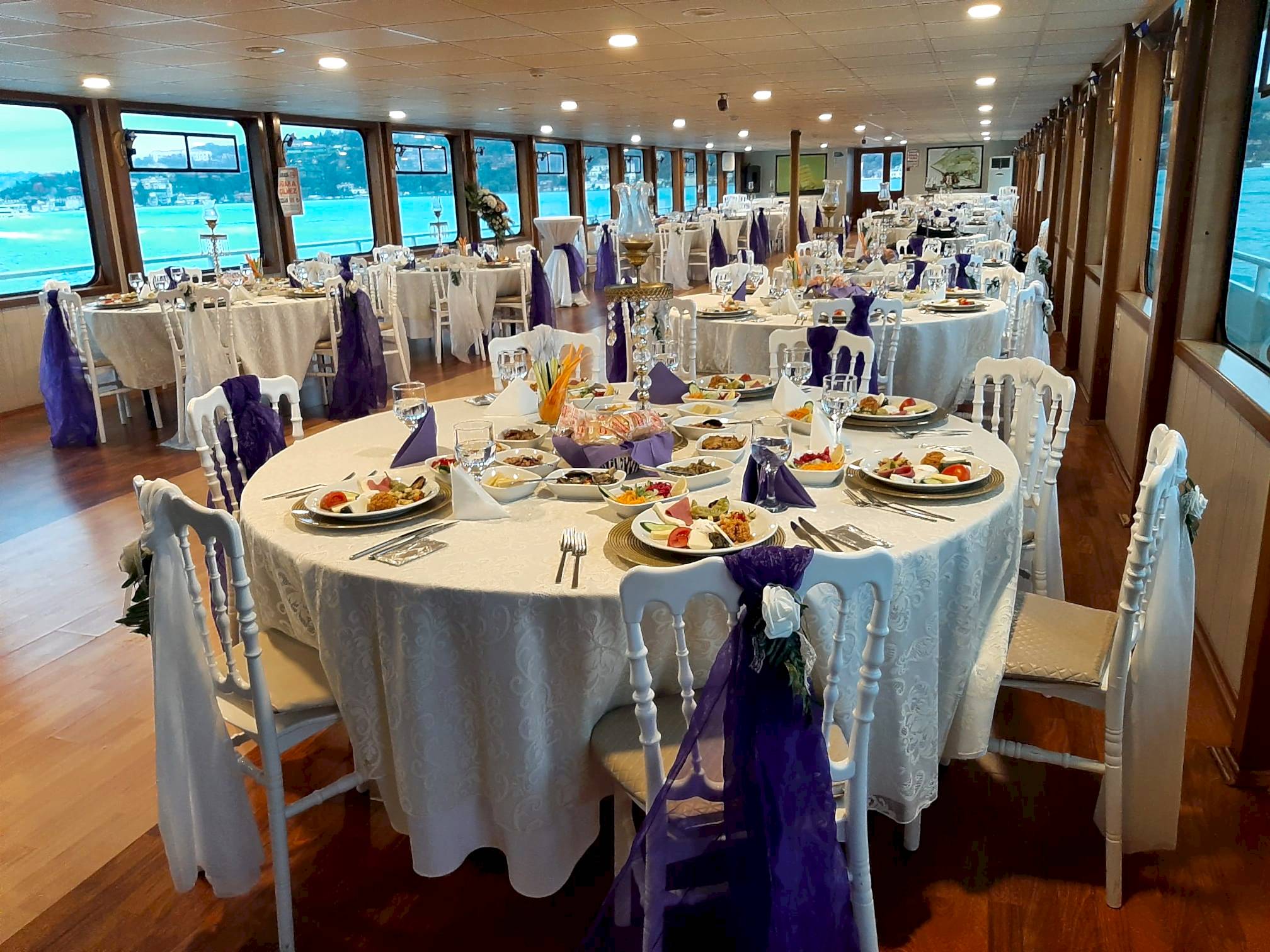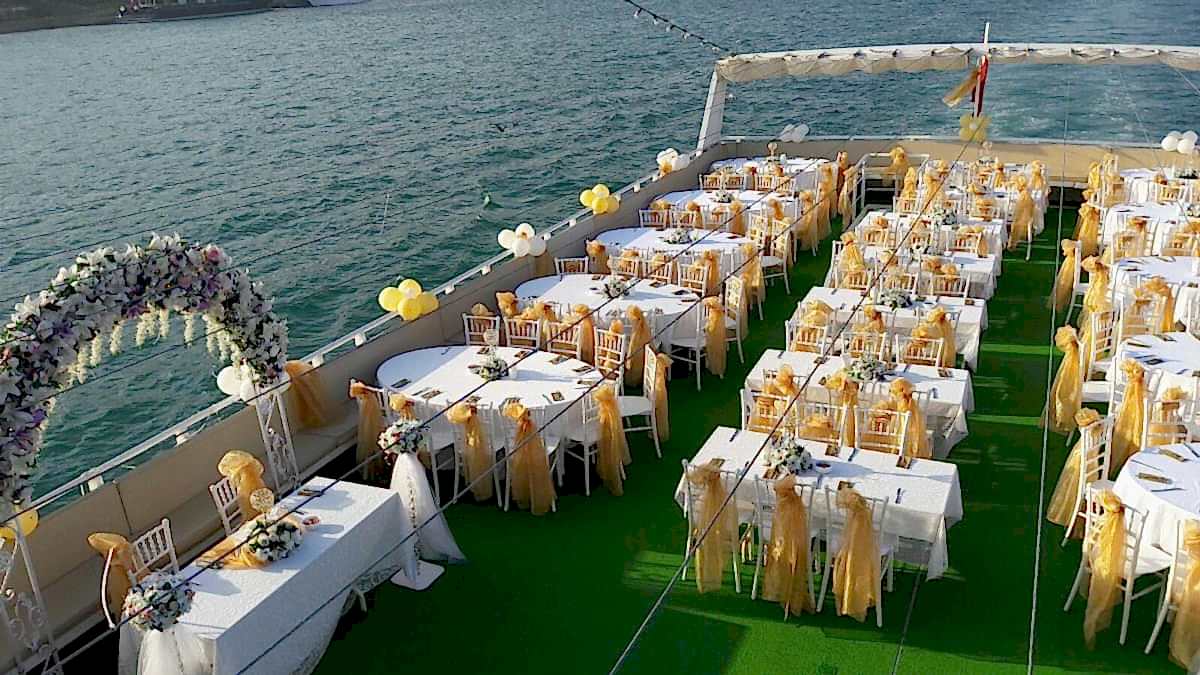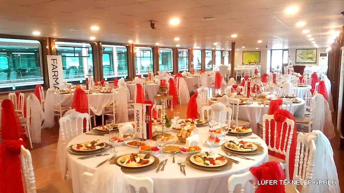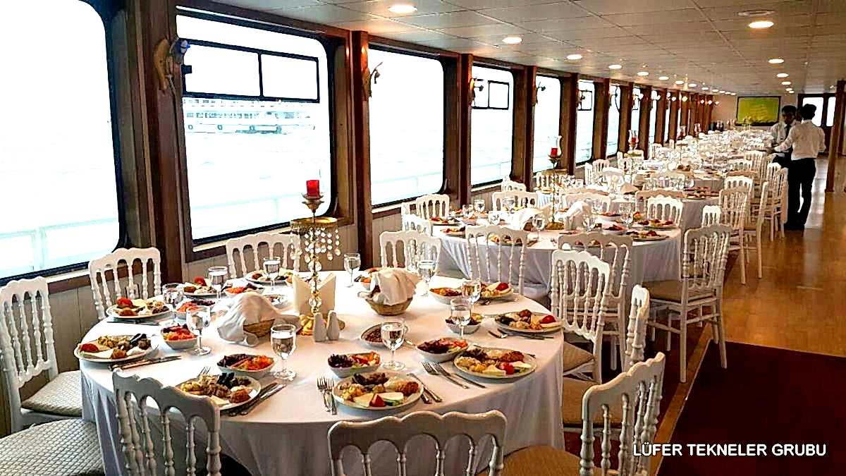 Yemekli Kapasite 250 Kişi , Kokteyl Kapasite 350 kişi .Günlük, saatlik ,akşam ,gündüz kiralık davet teknesi.
