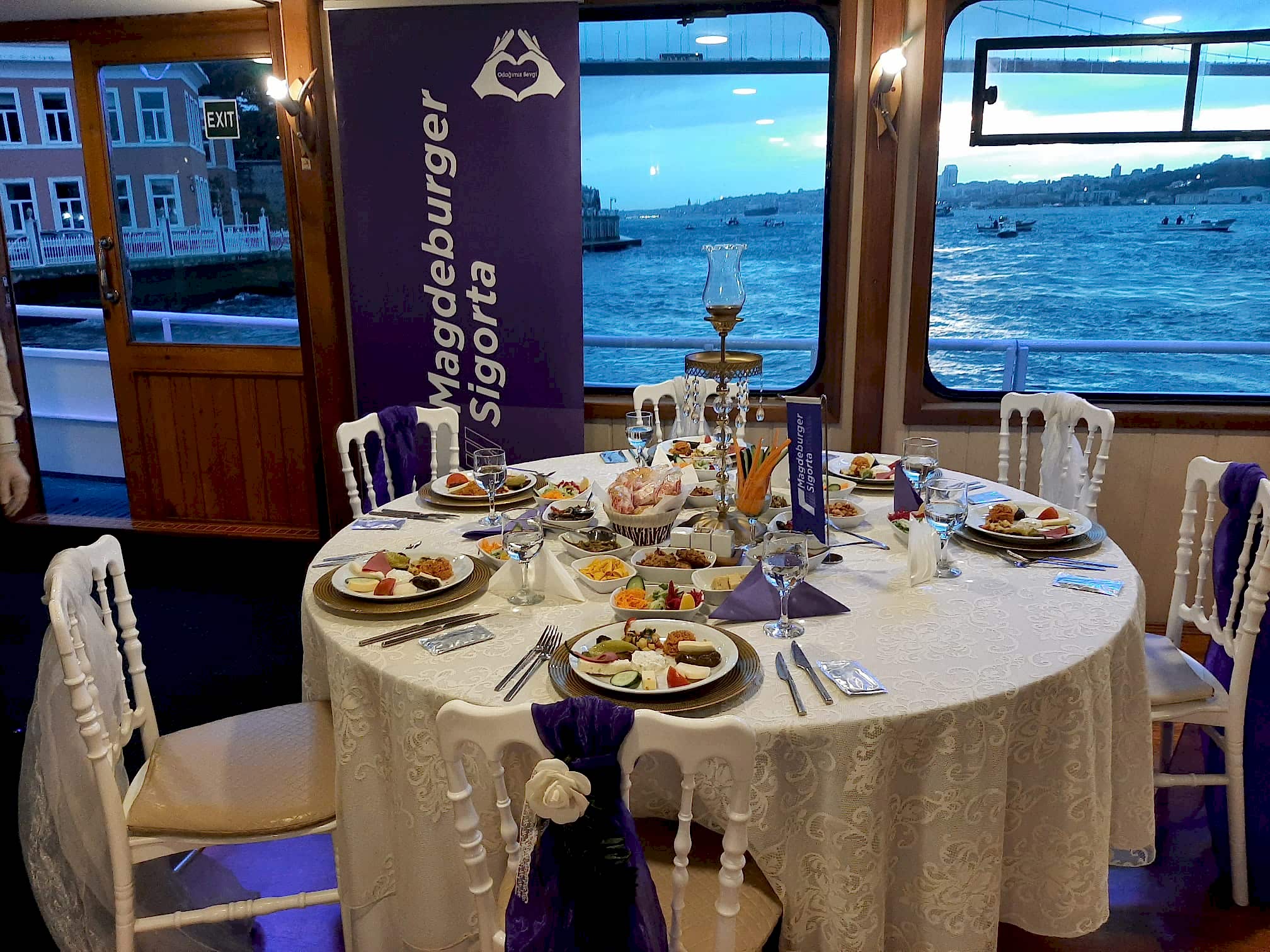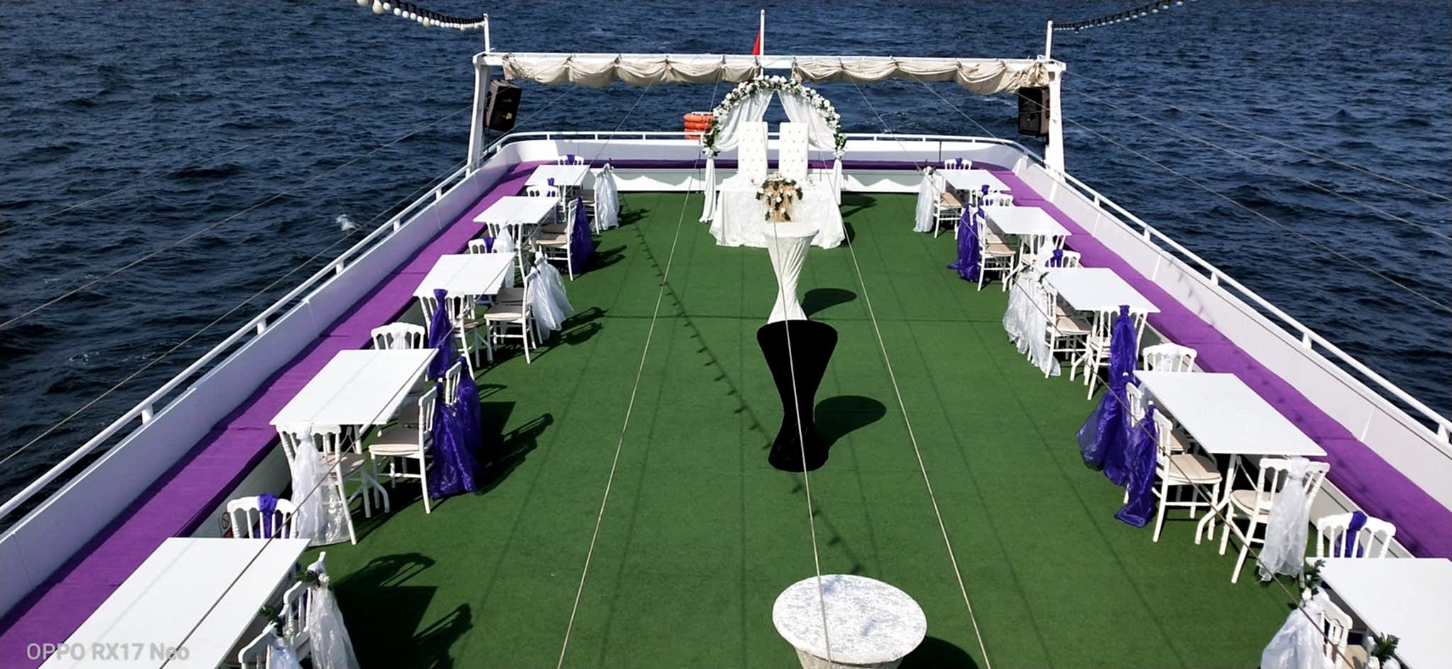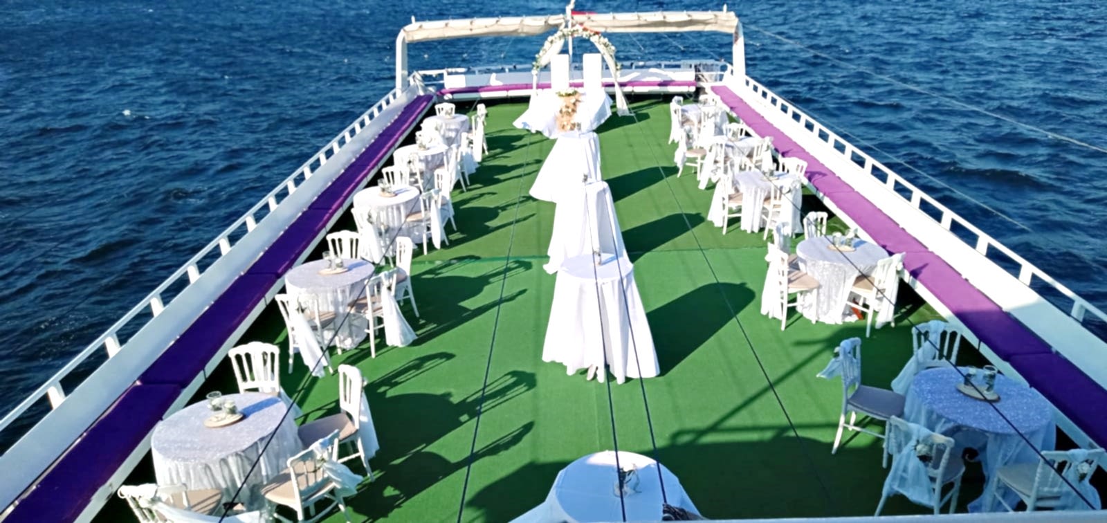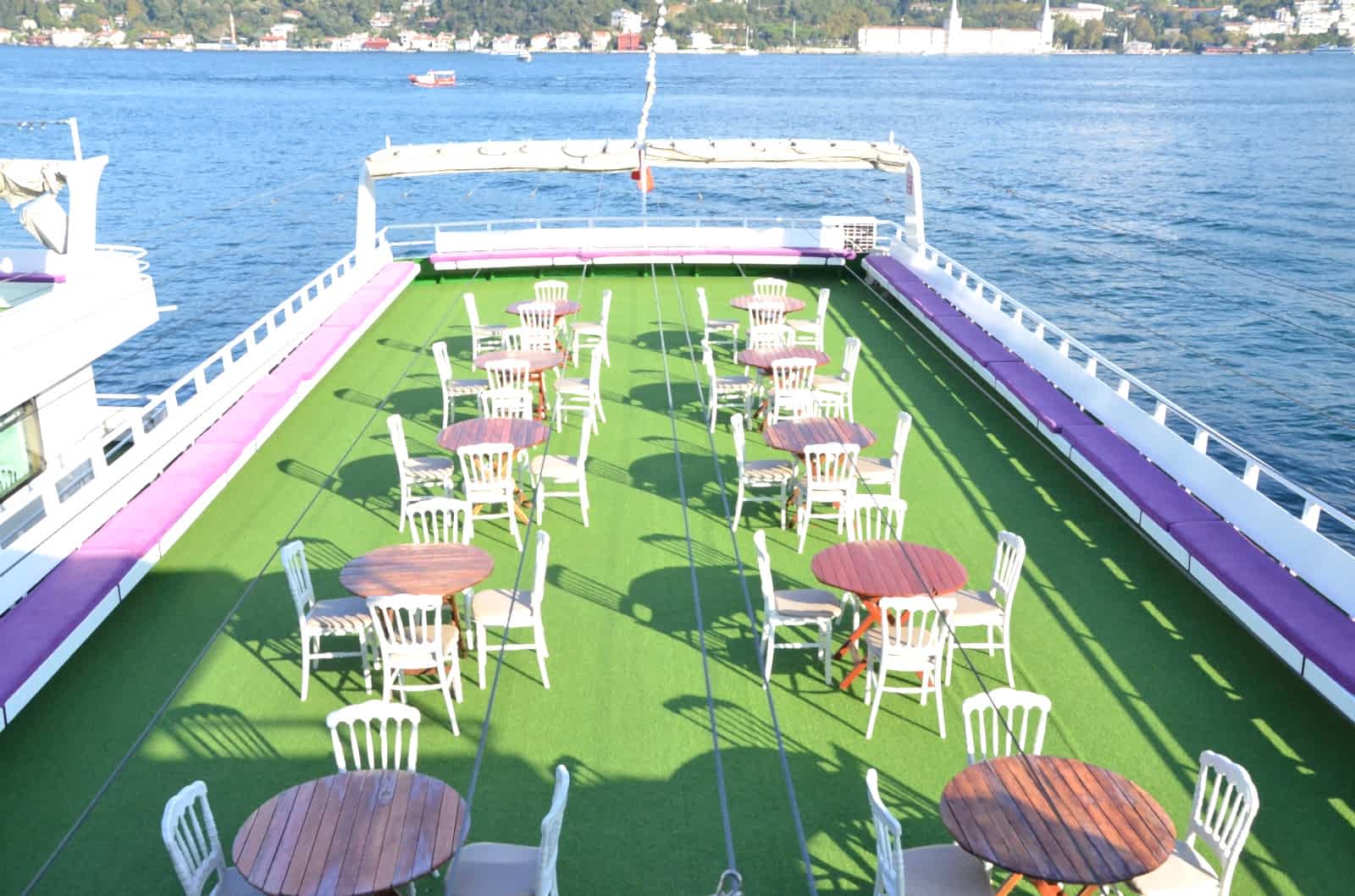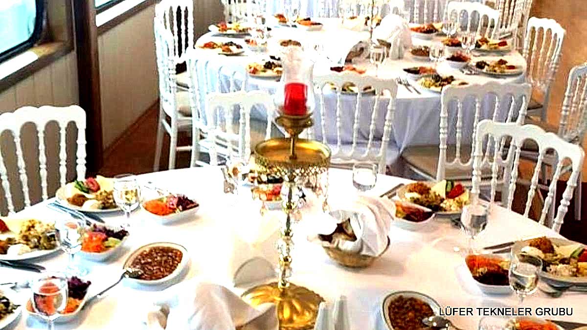 Yemekli Kapasite 250 Kişi , Kokteyl Kapasite 350 kişi .Günlük, saatlik ,akşam ,gündüz kiralık davet teknesi.